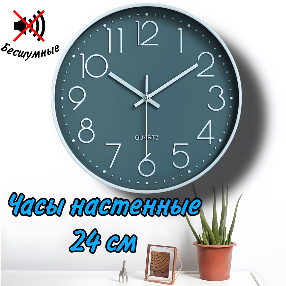 Часы настенные круглые, 24 см, серые, корпус белый