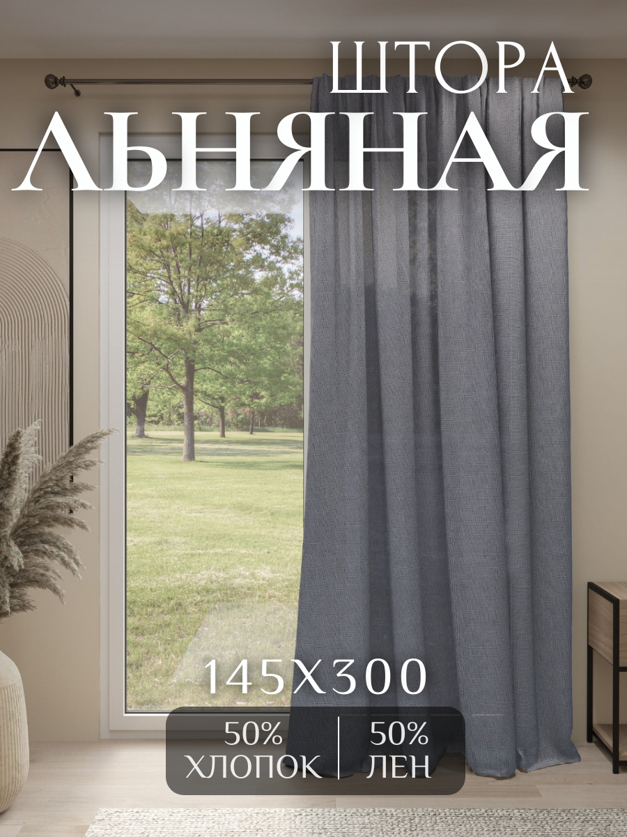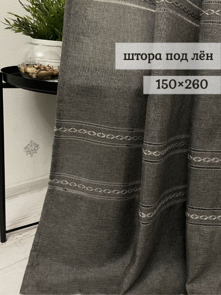 Штора БЬЮХОУМ под лен , 260х150см, графит, Полиэстер купить c доставкой