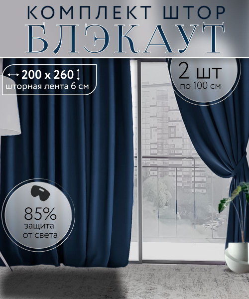 Штора Мир штор блэкаут_комплект , 260х200см, синий, Полиэстер купить c