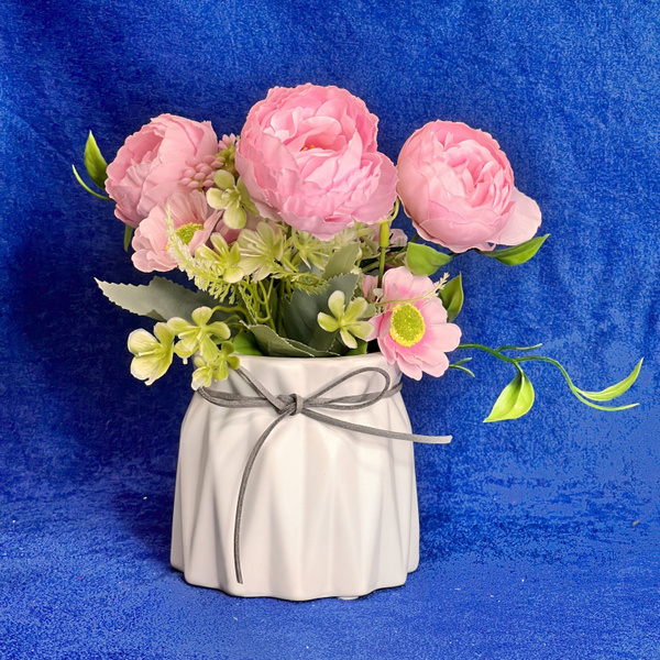 Белая Ваза Декоративная с Бантиком для интерьера 10 см.