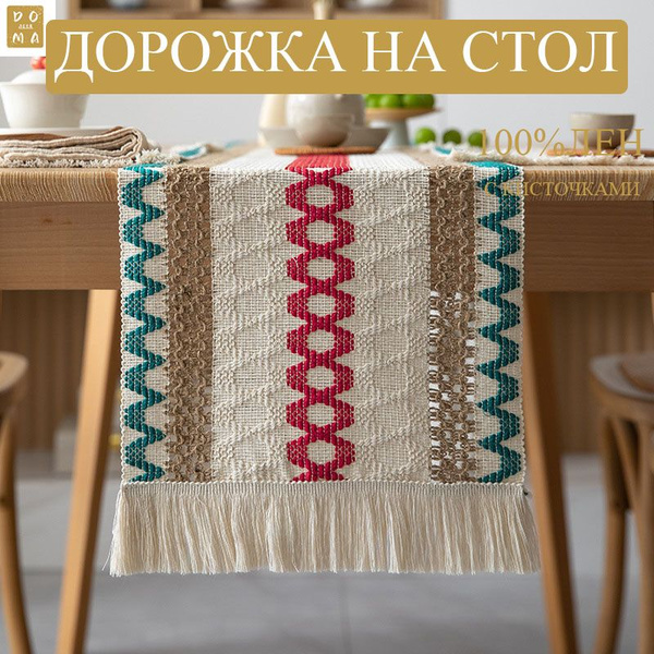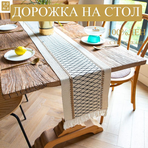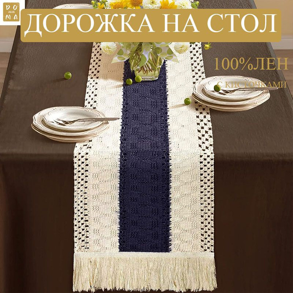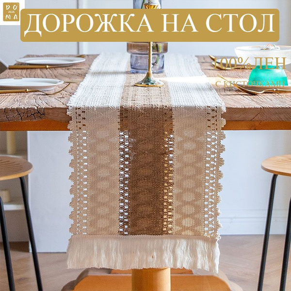 Дорожка для стола из льна скатерть лен на стол новогодняя кружевная