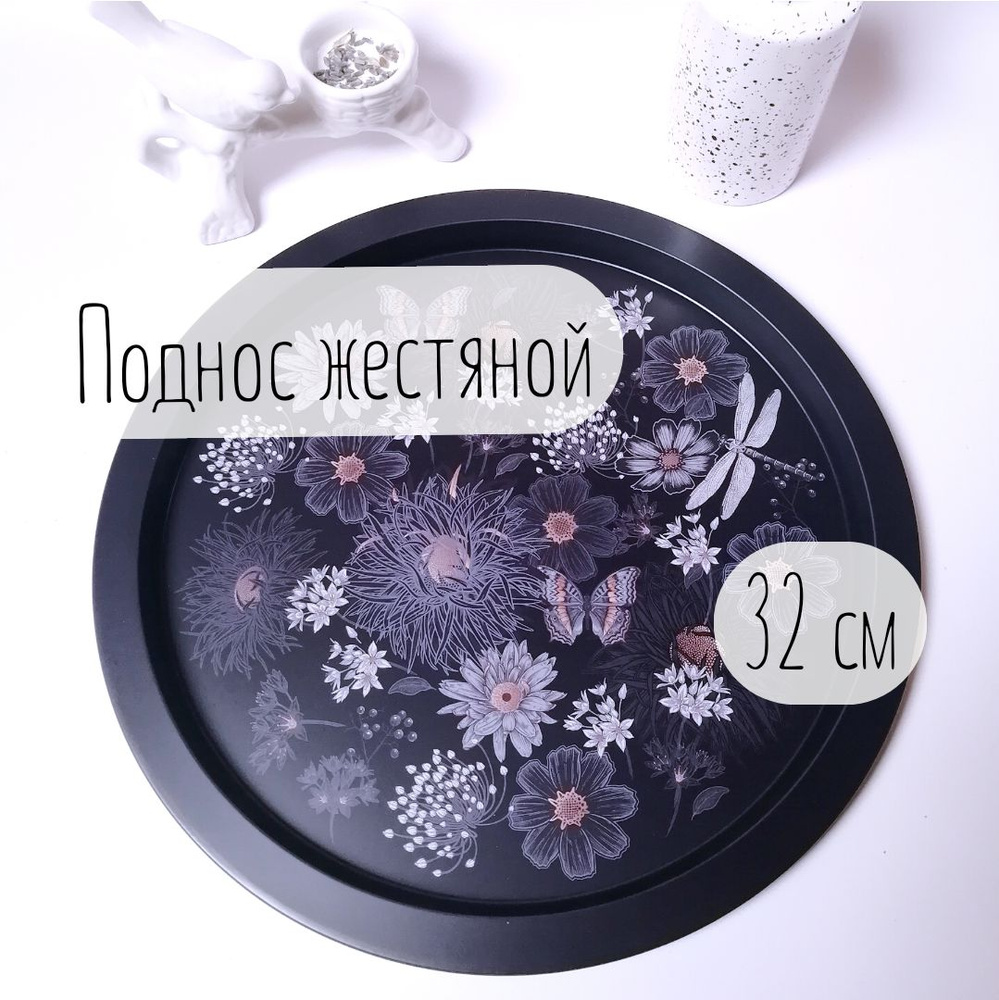 Поднос круглый металлический жестяной 32 см