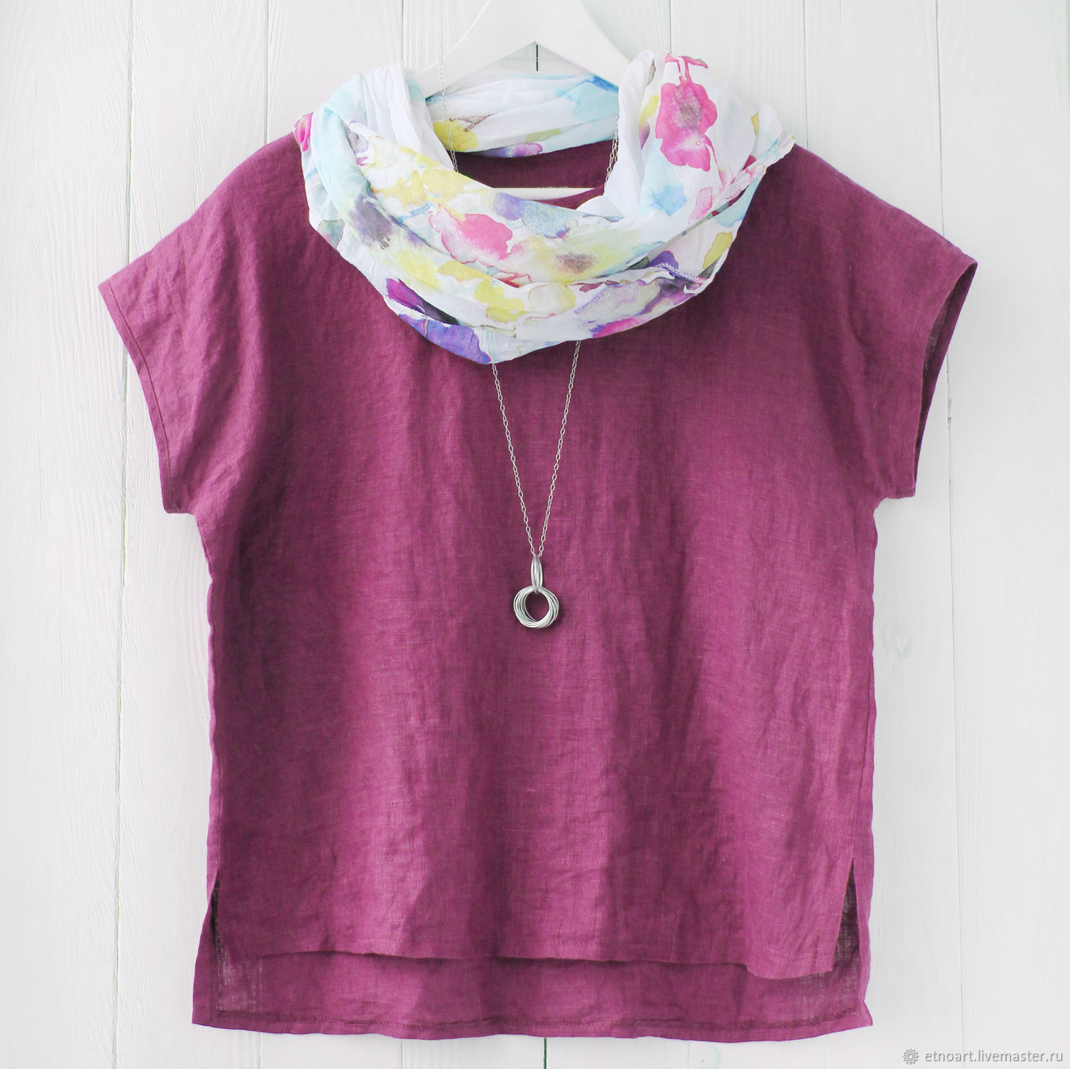 Вишневая блузка из 100% льна купить в интернет-магазине Ярмарка