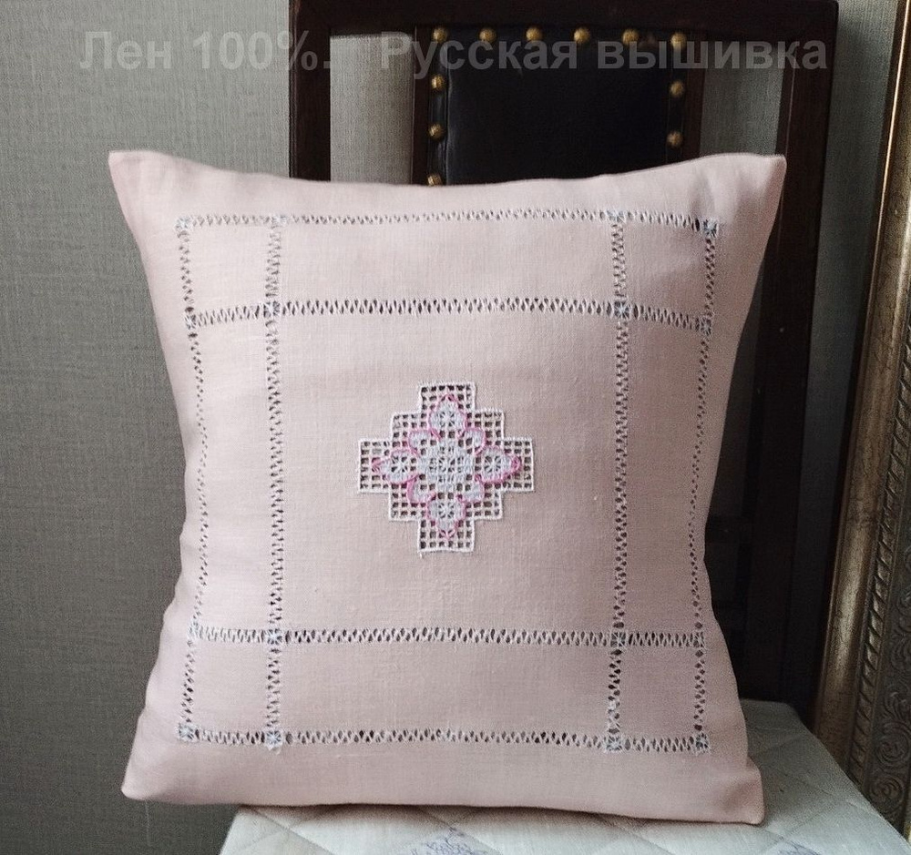 Наволочка с русской строчевой вышивкой , лён 100%.