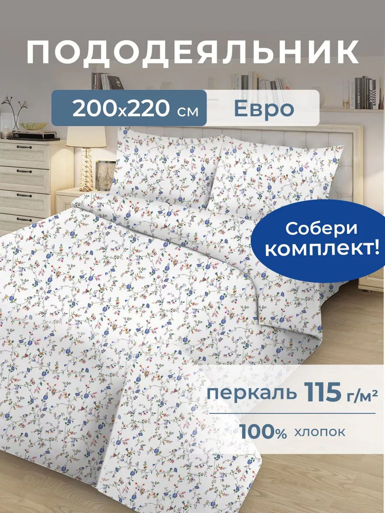 Пододеяльник Этель Blossom 200*220 см, 100% хлопок, перкаль (300 нитей
