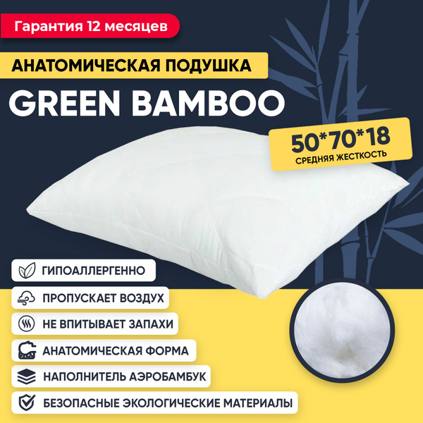 Подушка 50x70 см, наполнитель Бамбуковое волокно, Полиэстер,
