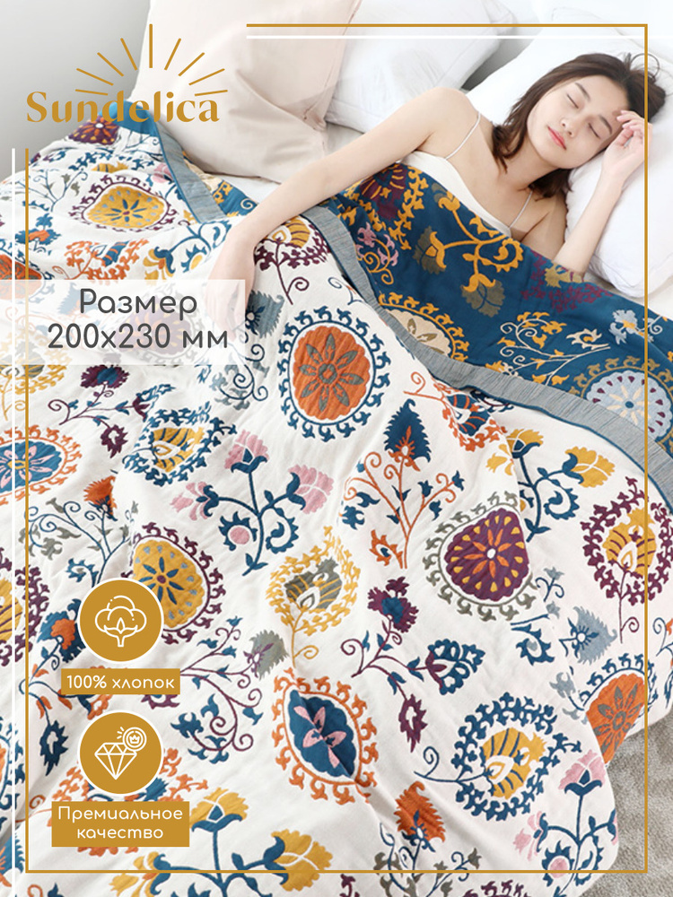 Покрывало на кровать Плед 200х230 см "Орнамент" Хлопок Муслиновое